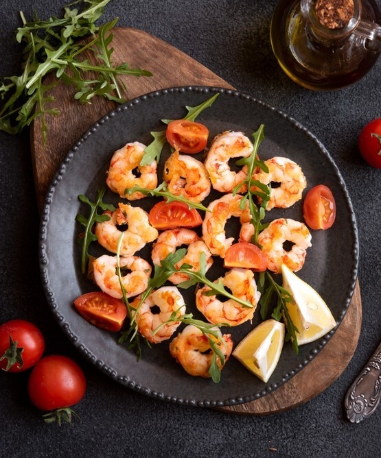 - Подавайте сразу — креветки получаются ароматные и сочные.