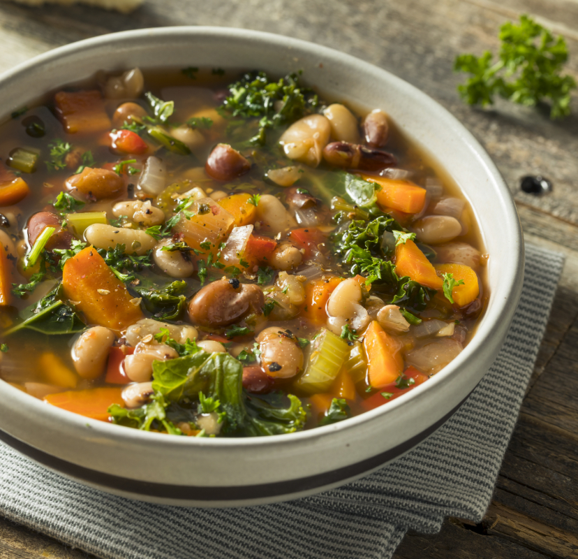 Нарежьте мелкими кубиками лук, кабачок и стручковую фасоль. Поместите все ингредиенты в блендер.