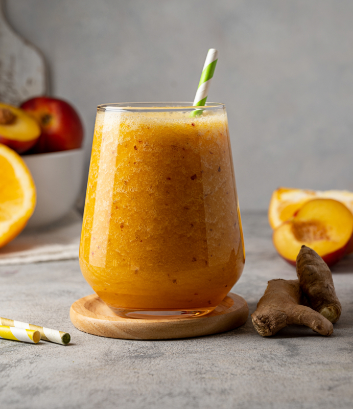 Все ингредиенты смешать в блендере и разлить по бокалам, добавить лед.